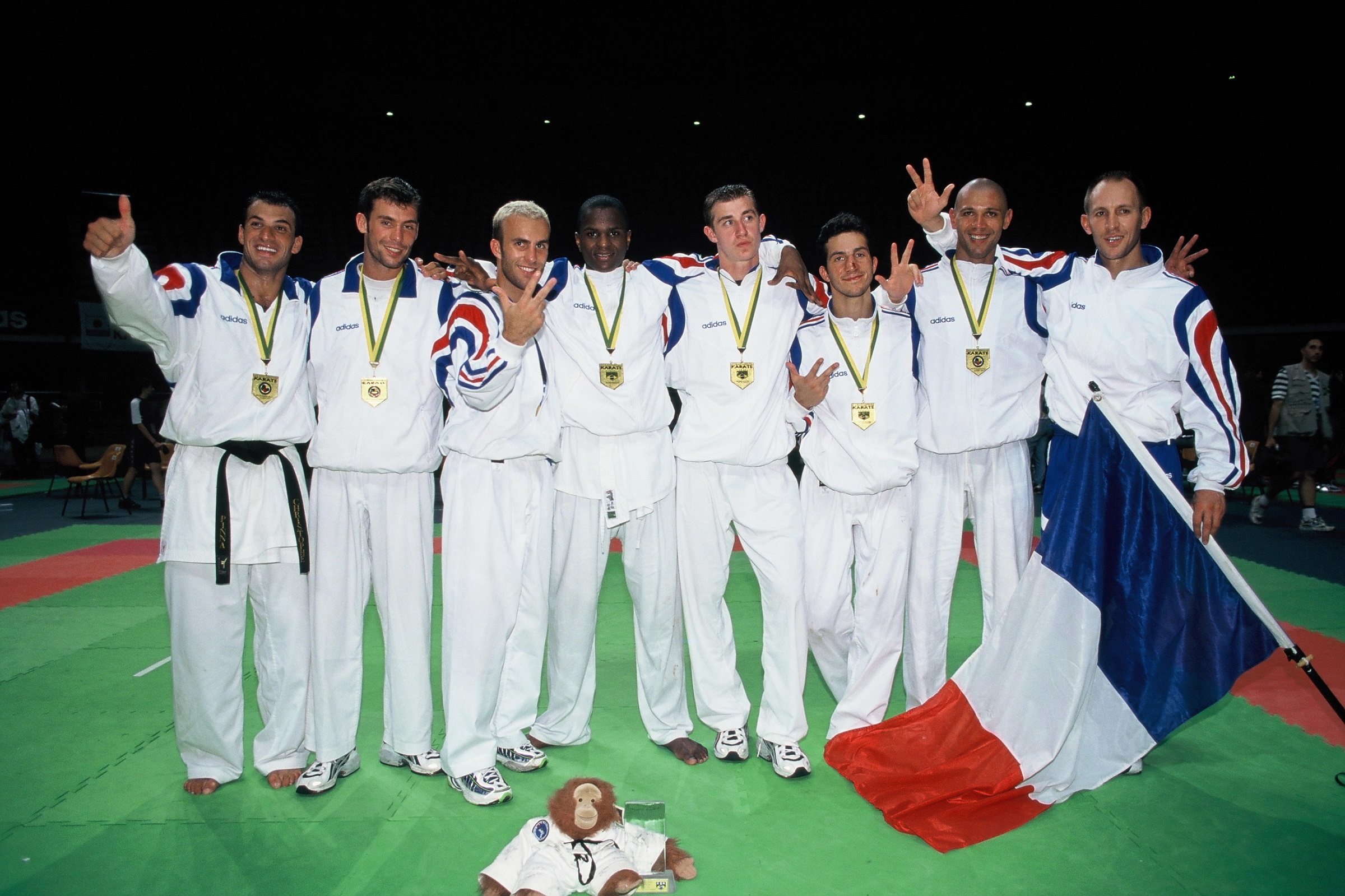 Le Japon reprend son leadership abandonné à l’Espagne en 1992. Les Français gagnent leur 1er titre en Kumite par équipe ainsi que Mickaël Milon en Kata. Damien Dovy, Alain le Hetet et Davide Benetello sont sacrés champions du monde.