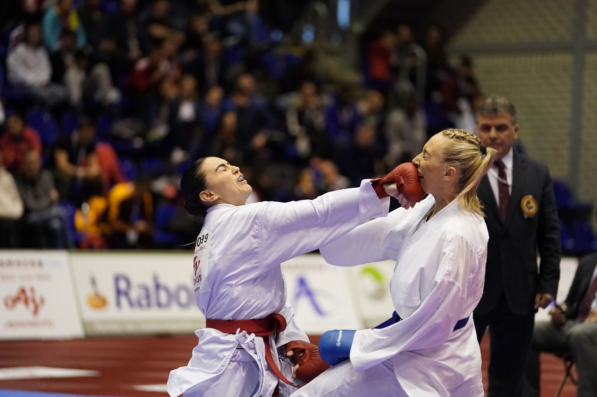 Oui, totalement, c’est une très bonne journée de travail pour moi. J’ai réussi à mettre en place mon karaté, à reproduire ce que je travaille à l’entraînement, c’est une journée très enrichissante. De plus, cette victoire contre Lotfy qui est dans ma catégorie individuelle (-61 kg) est importante pour mon autre projet qui est la qualification olympique. Mais avant tout, je suis contente d’avoir réussi à mettre l’équipe sur la bonne voie dans chacun des tours qu’on a disputé.